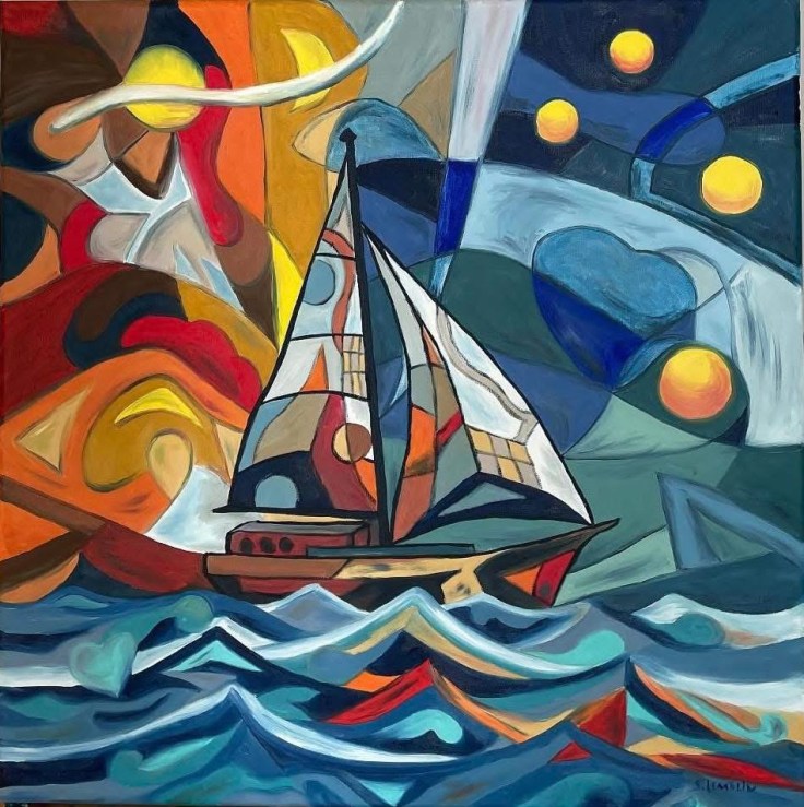 Sylvie Lemelin est diplômée en graphisme. Elle aime styliser et épurer les formes afin de créer des abstractions géométriques. Ses toiles sont très colorées et pleines de vie. Ses médiums préférés sont l’huile sur toile, l’encre et l’aquarelle. Ses œuvres sont très vibrantes car son but est de rendre les gens heureux lorsqu’ils regardent ses créations. Ses deux artistes favoris sont Wasilly Kandinsky et Alfred Pellan, peintres qui l’ont inspirée dans son travail.